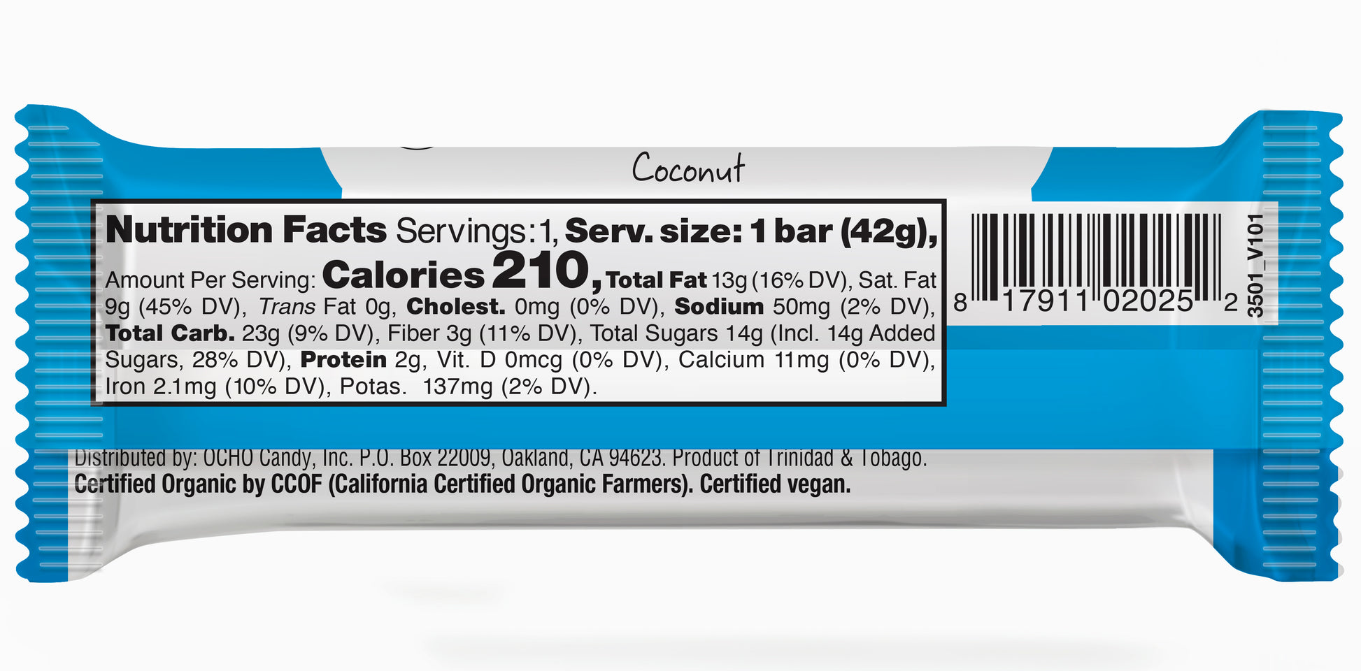 Organic Dark Chocolate Coconut Bars - 12ct Bar Caddy