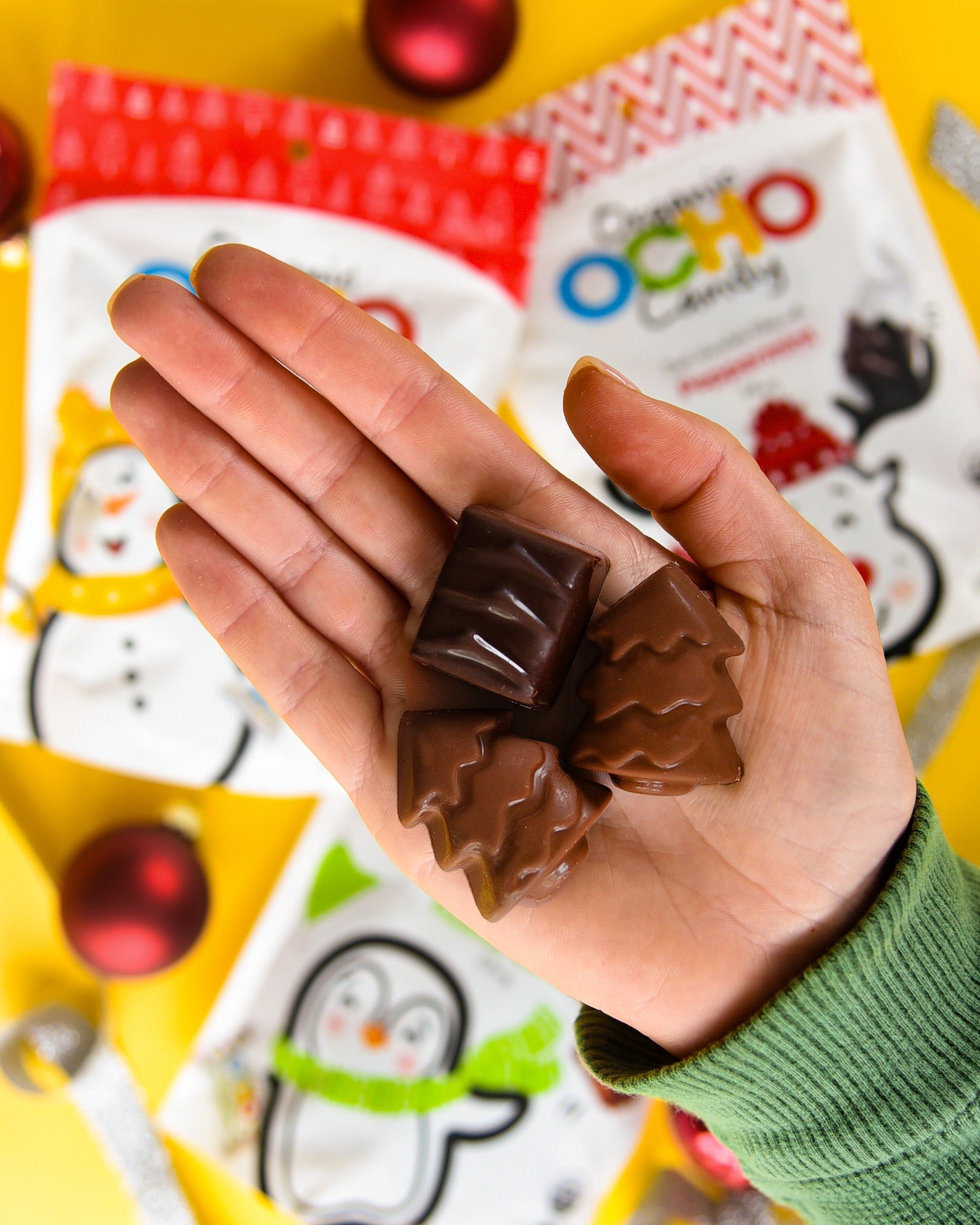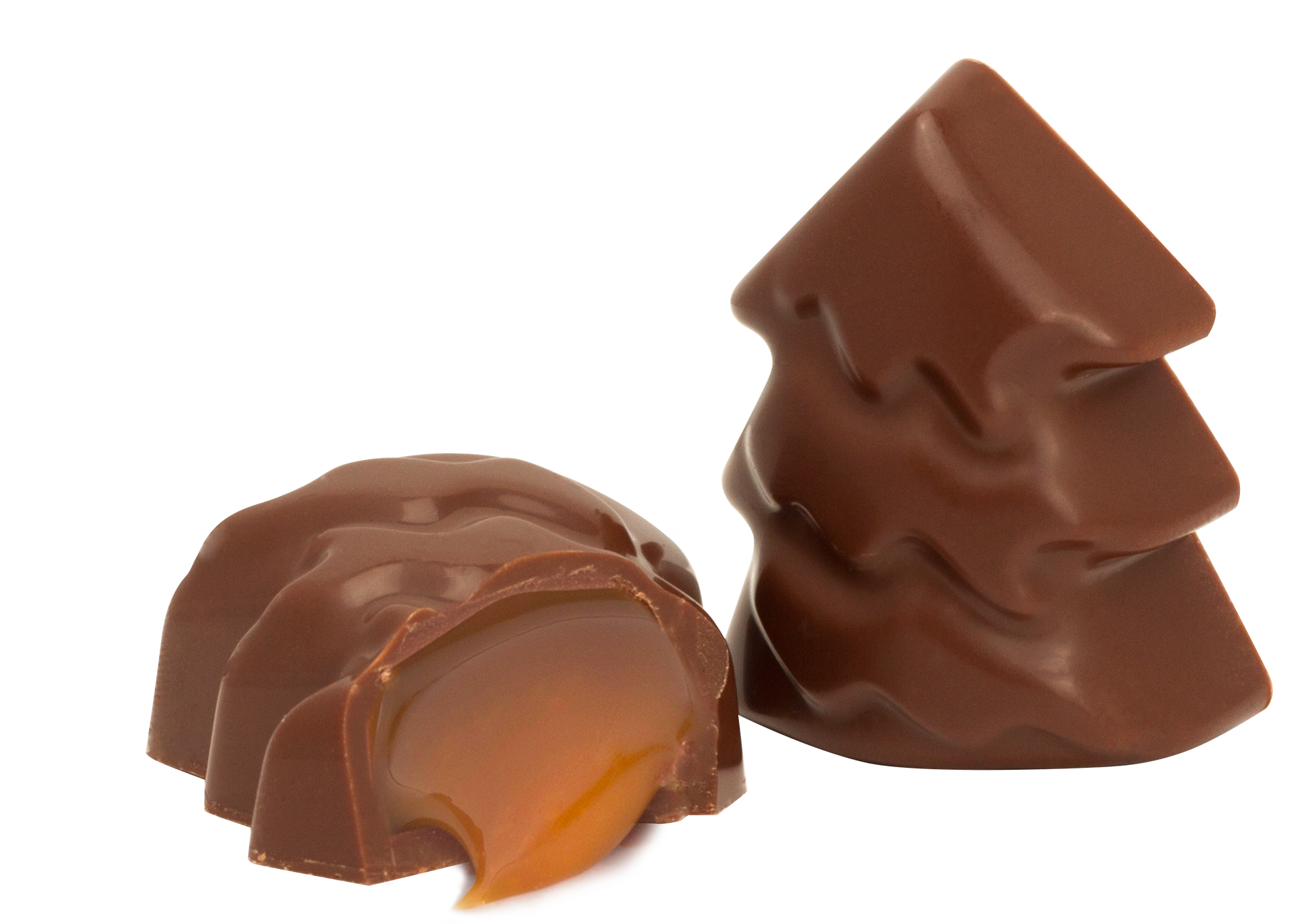 But, you're here looking for a cool gift to give at the office party, or the white elephant gift exchange, or to fill a stocking. Just don't hang it over the fireplace, because chocolate melts. These chocolates are shaped like Trees! Milk Chocolate Trees filled with Creamy Caramel. Now, that's a gift.